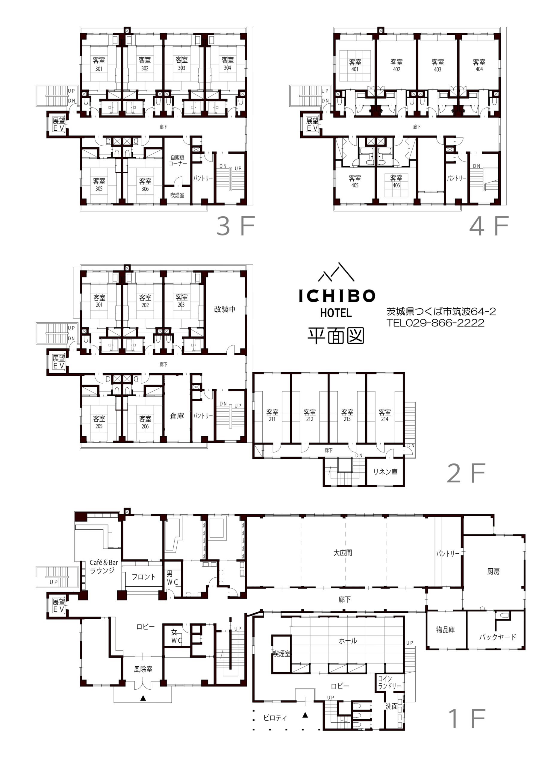 - 筑波山側:3F 2室、2F 1室 / 風呂なし